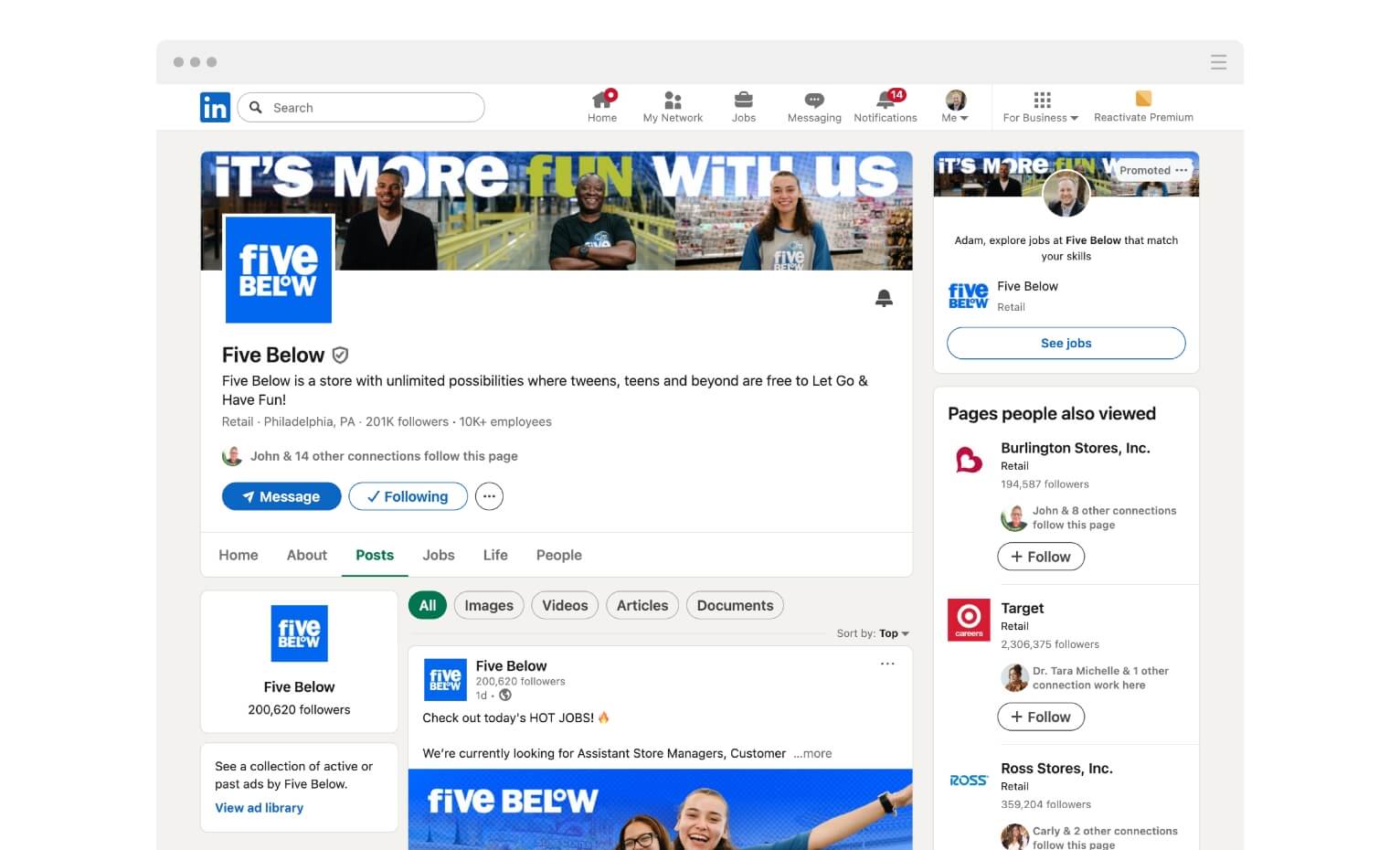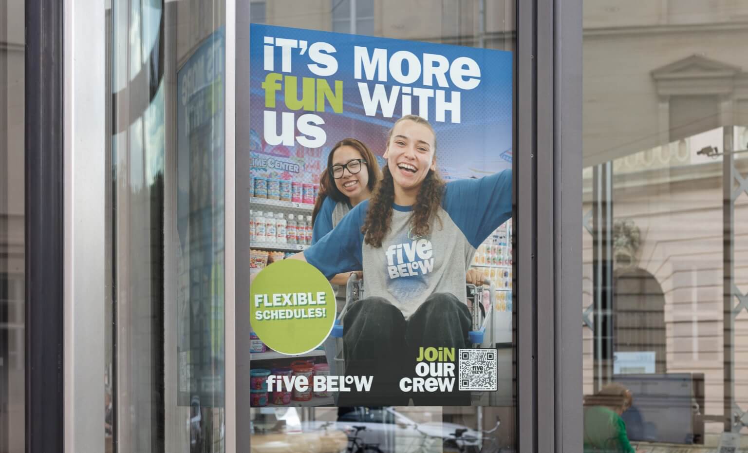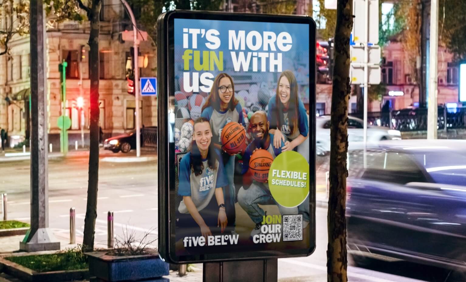 Five Below asked for an employer brand system that actually feels like Five Below: high-energy, inclusive, and unmistakably fun. We developed a design language and copy system around “It’s More Fun With Us,” then applied it across recruiting touch points: career webpages, in-store posters, flyers and social placements. The work translates in-store energy into a clean, candidate-first experience — bold color, graphic shapes, succinct headlines, and clear benefits hierarchy — so job seekers can quickly see role types, growth paths, and culture cues. The result is a flexible set of assets that marketing and TA teams can deploy fast, with consistent visual standards and modular content blocks for corporate, distribution and store roles.